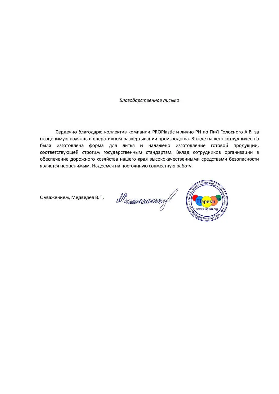 Благодарственное письмо "Шарики.org"